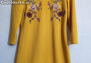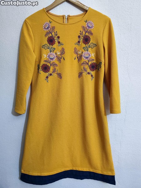 Preço: 8 €Vestido elegante bordado cor mostarda tamanho L XL