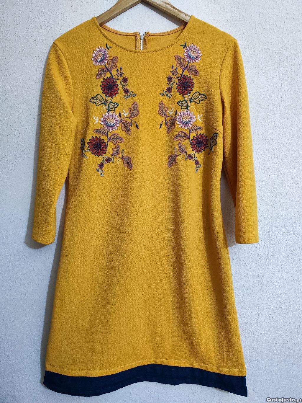 Vestido elegante bordado cor mostarda tamanho L XL