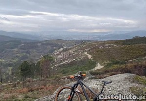 Bicicleta em carbono como nova, tamanho S (43cm, altura do ciclista de 1.64cm ate 1.80cm) corresponde a um M de outras marcas. Sem nenhuma queda nem nenhum arranhão, sempre muito bem estimada. Revisão à suspensão, lubrificação de pedaleiro e cubos feita este mês. Quadro com películas protetoras nos principais pontos de impacto.