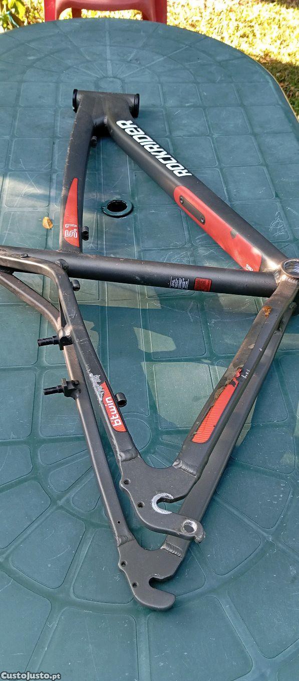 quadro de bicicleta tamanho M em alumínio, não tem suporte para travões de disco, tem marcas de uso mas está em bom estado, muito resistente, vendas, trocas, preferência negócios em mão,