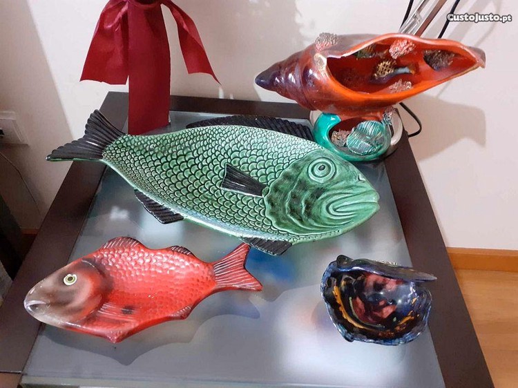 -Peça pintada à mão com a forma de peixe. Medidas: 24.5 cm. Valor: 8EUR
