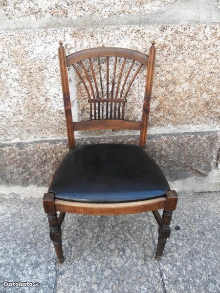 Bela cadeira antiga com assento em pele.