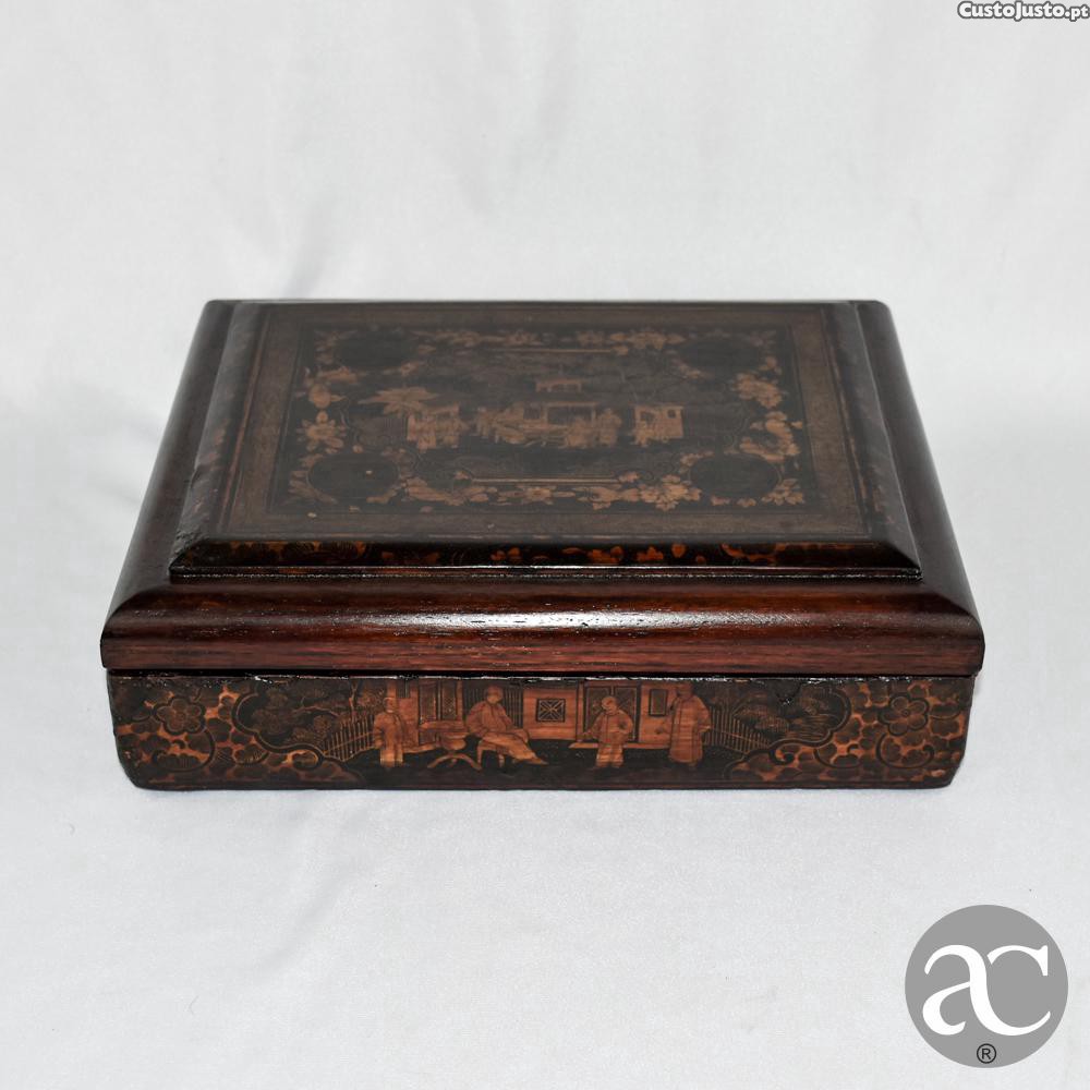 Preço: 250 €Caixa de jogo chinesa em Laca e madeira, séc. XIX, com caixas no interior