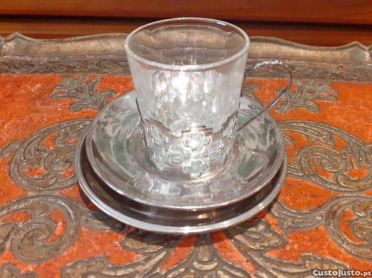 -Chávena de café em casquinha e vidro.