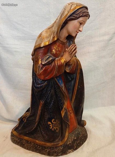 Figura de Maria mãe de Jesus em madeira policromada estofada.