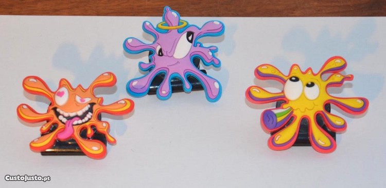 Engraçados magnéticos em fimo, com mola para prender papéis, retratando um borrão de tinta.