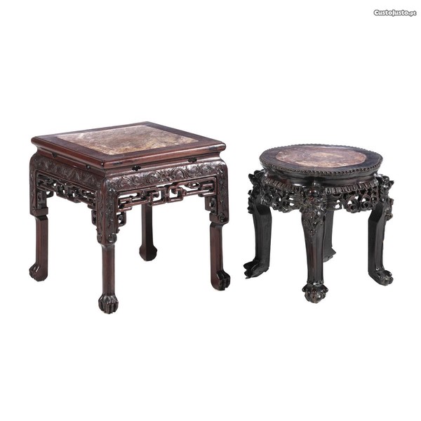 Mesa de apoio e banqueta chinesas do século XIX, em madeira de tamarindo com