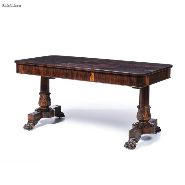 Mesa vitoriana do século XIX, capeado a madeira de pau-santo com duas gavetas.