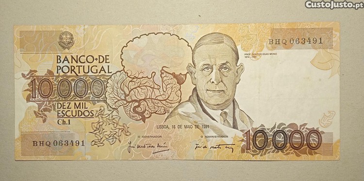 Preço: 70 €Nota 10 mil escudos 1991 Egas Moniz - Envio Gratis