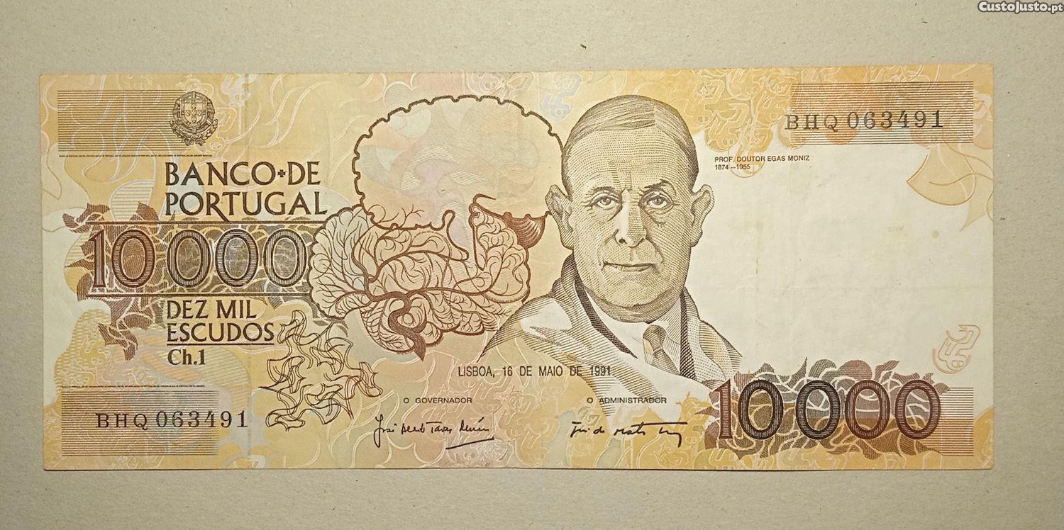 Nota 10 mil escudos 1991 Egas Moniz - Envio Gratis