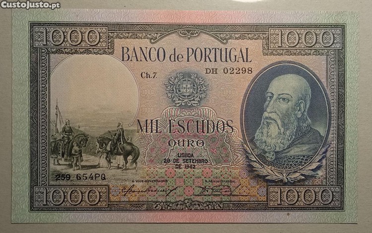 Preço: 425 €Nota Mil escudos 1942 - Portes Gratis
