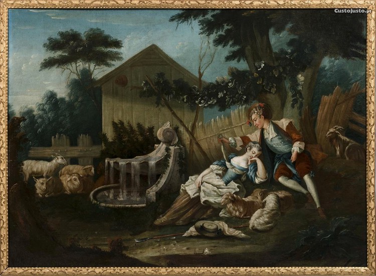 Óleo sobre tela, escola francesa do século XVIII.