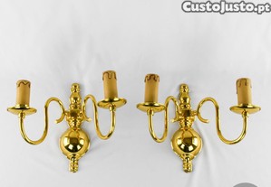 Par de apliques de parede de 2 lumes em metal dourado, meados do séc. XX