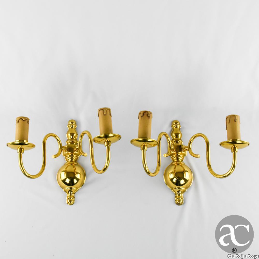 Preço: 70 €Par de apliques de parede de 2 lumes em metal dourado, meados do séc. XX