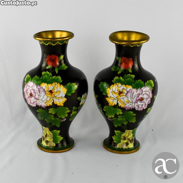 Preço: 125 €Par de Jarras em Cloisonné, decoradas com flores, circa 1960, N2