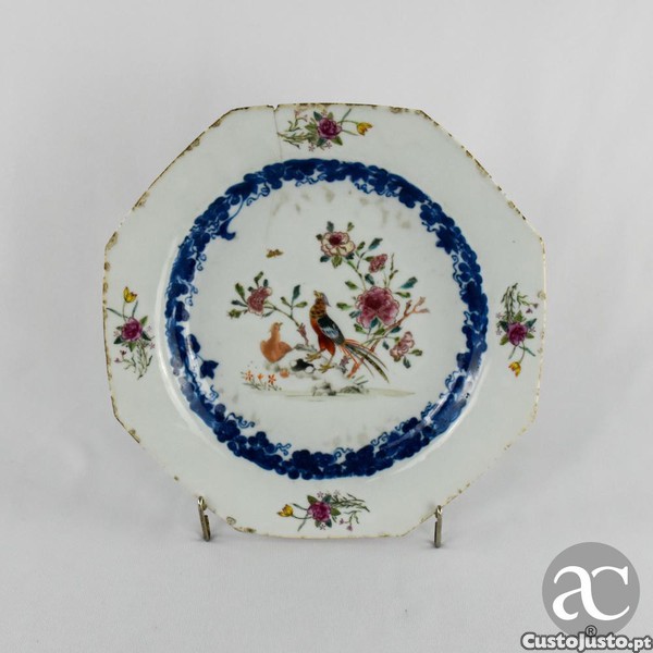 Preço: 200 €Prato octagonal em porcelana da China decoração Faisões, Período Qianlong, séc. XVIII