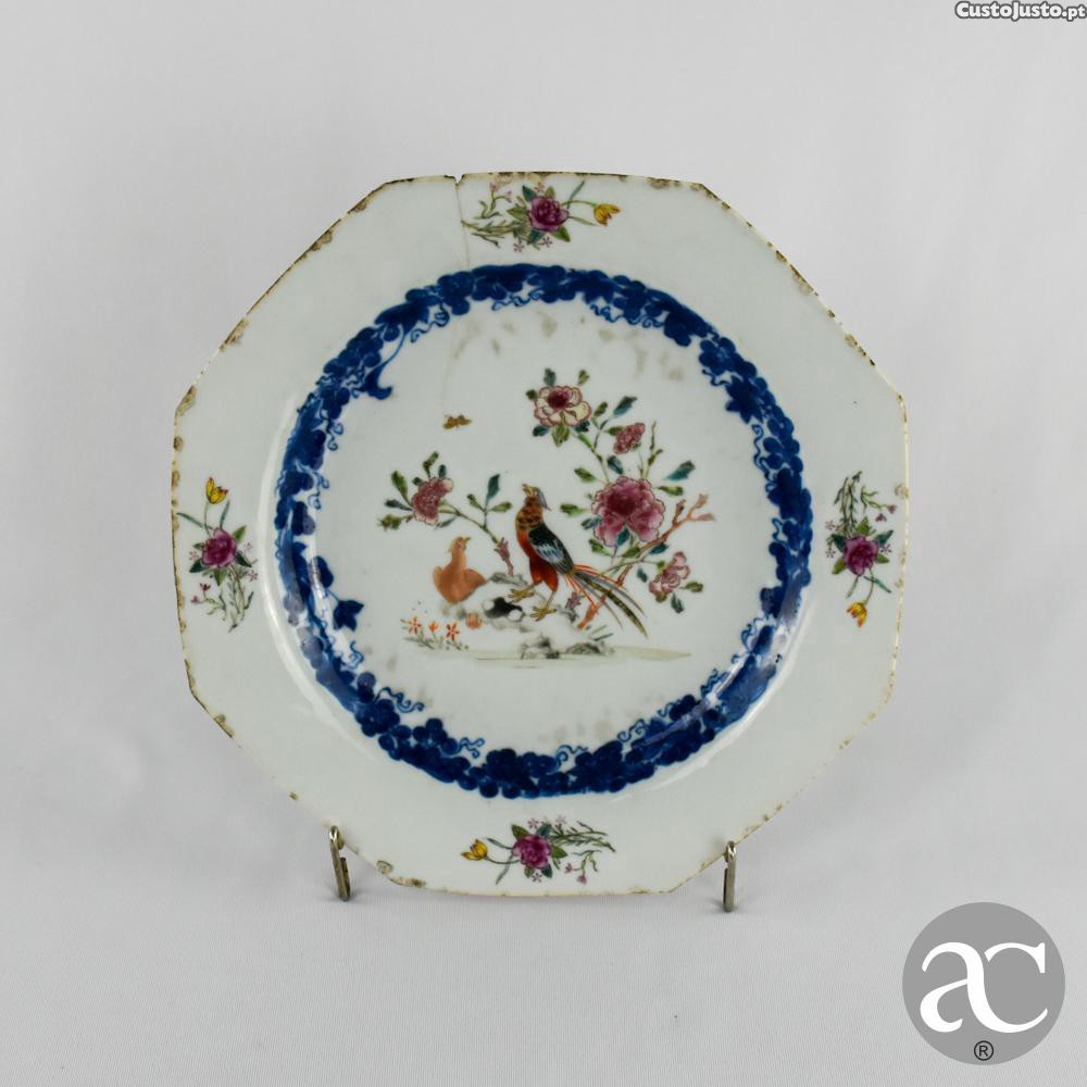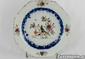Prato octagonal em porcelana da China decoração Faisões, Período Qianlong, séc. XVIII