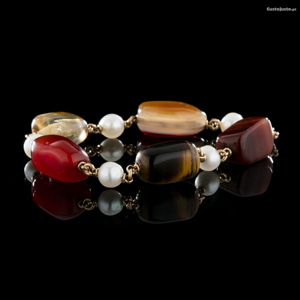 Preço: 1 750 €Pulseira Ouro Pérolas Olho Tigre Quartzos Jaspe