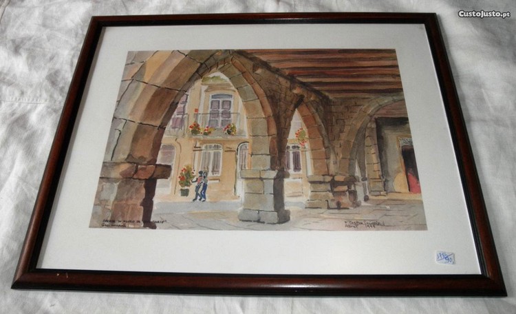 Quadro (serigrafia) de F. Coelho Teixeira intitulado "Arcadas de Museu de Arte Naif"