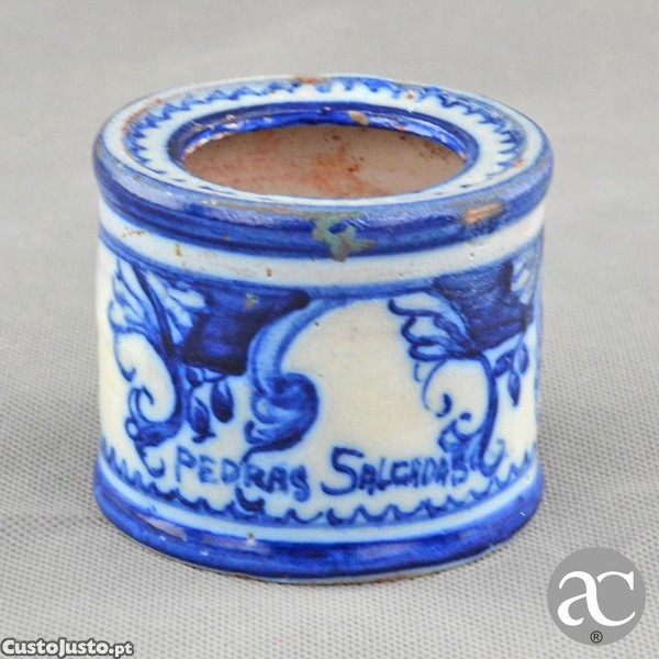 Preço: 70 €Tinteiro em Faiança Portuguesa da Fábrica de Constância com decoração a azul e branco
