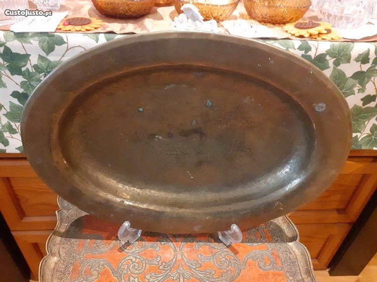 -Travessa / centro de mesa em latão martelado assente em 4 pés.