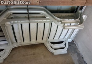 Duas espreguiçadeiras brancas com rodas atrás para piscina em bom estado de conservação. Perfeitas para aproveitar os dias de sol e relaxar à beira da piscina.
