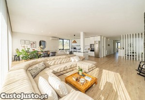 No primeiro piso, encontra um hall de entrada amplo que dá acesso a uma sala de estar com recuperador de calor e ligação direta a um espaçoso terraço, ideal para momentos de lazer. A cozinha em open space, com muita luz natural, convida ao convívio. Dispõe ainda de escritório, dois quartos com roupeiros embutidos, uma casa de banho completa e uma suite ampla com varanda comum a dois quartos.