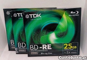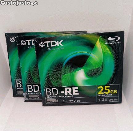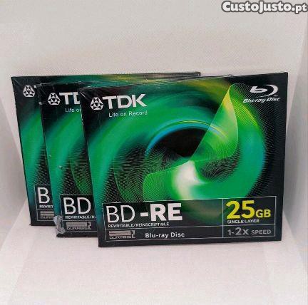 Pack de 3 Lot of 3 TDK BD-RE 25GB Blu-ray Rewritable Disc 1-2x Speed DURABIS2 - Novos/Selados