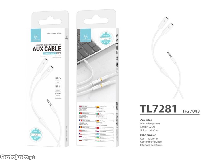 Preço: 5 €Cabo Auxiliar com Microfone Compacto, Prático e Funcional