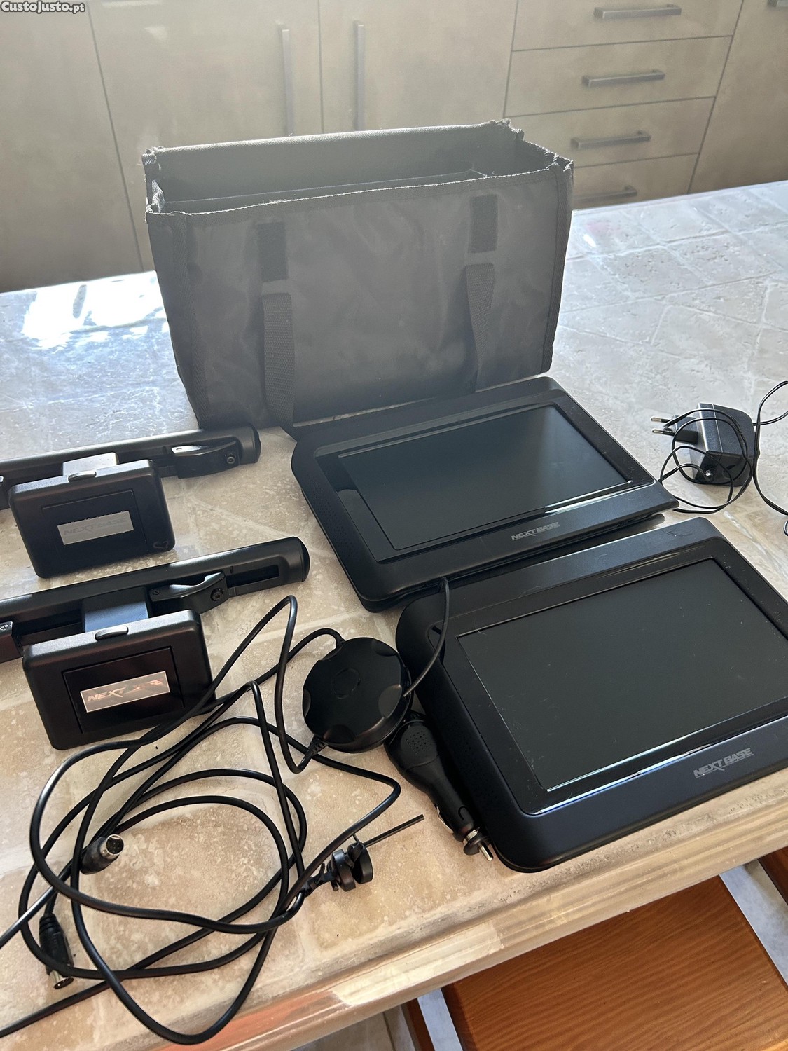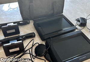 Leitor de DVD portátil para automóvel. Nextbase (1 player + 1 ecrã) + suportes para automóvel + cabos e bolsa. Sem comando remoto. Funciona perfeitamente. Dimensões: 15,6 cm x 22,6 cm.