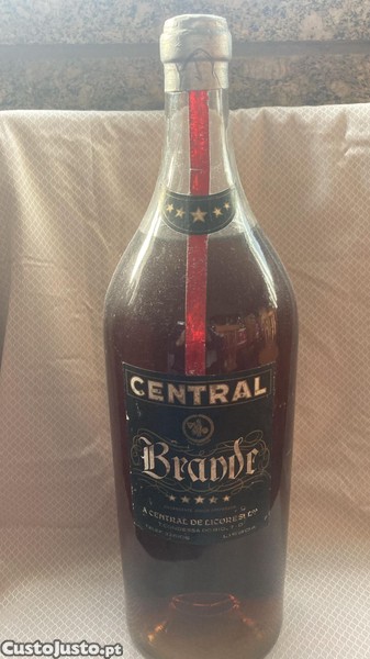 Garrafa de aguardente (brandy) vintage da marca "Central", produzida por A Central de Licores, Lisboa