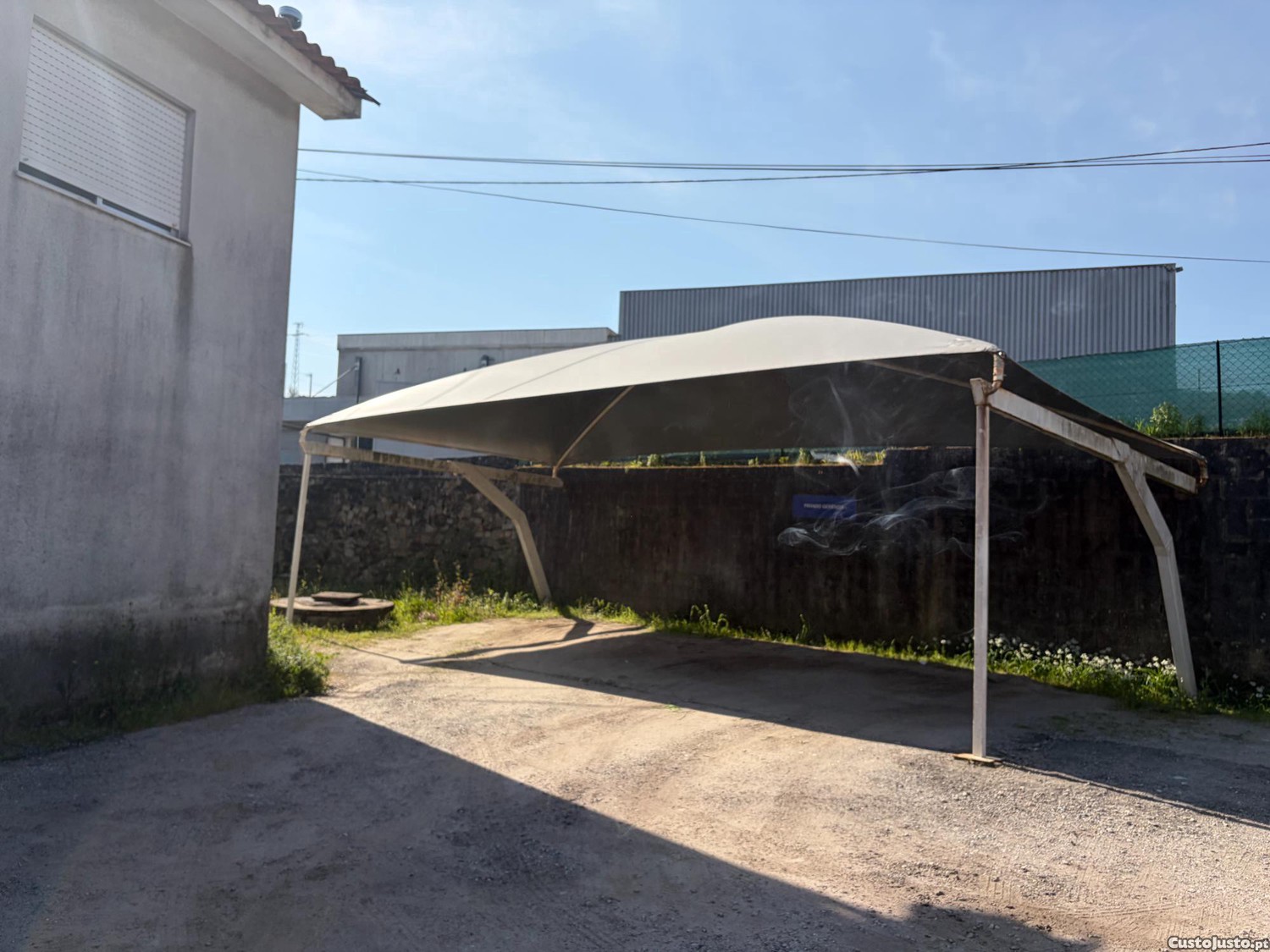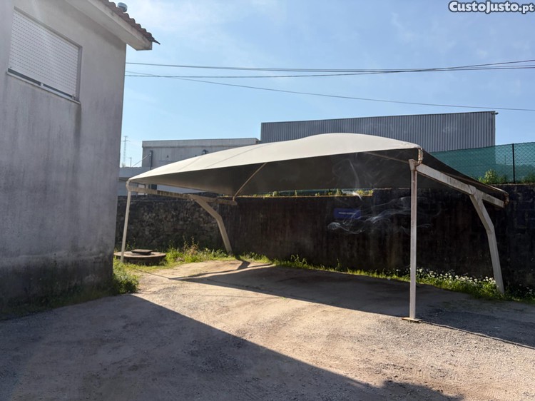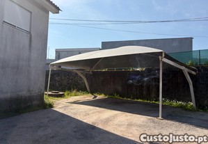 Estrutura em ferro com dois braços a frente para não ter de fazer sapata para segurar a estrutura ao chão ,cobertura nova com meio ano , negociável .