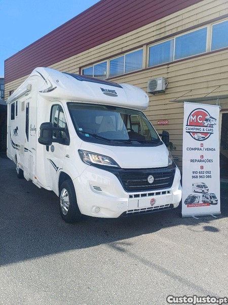 Fiat Ducato Mac Louis Yearling do ano 2017, motor 2.3 com 130cv, 10.600km e 5 lugares de livrete. Autocaravana com painel solar, toldo, suporte de bicicletas, salao grande, cozinha em L, fogao de 3 bicos , frigorífico grande, 2 Televisões, porta a separar para a casa de banho e outra para o quarto, cama central e cama basculante, casa de banho com duche separado, ar condicionado na cabine, caixa de 6 velocidades , cruise control, camara marcha atras, garagem grande.