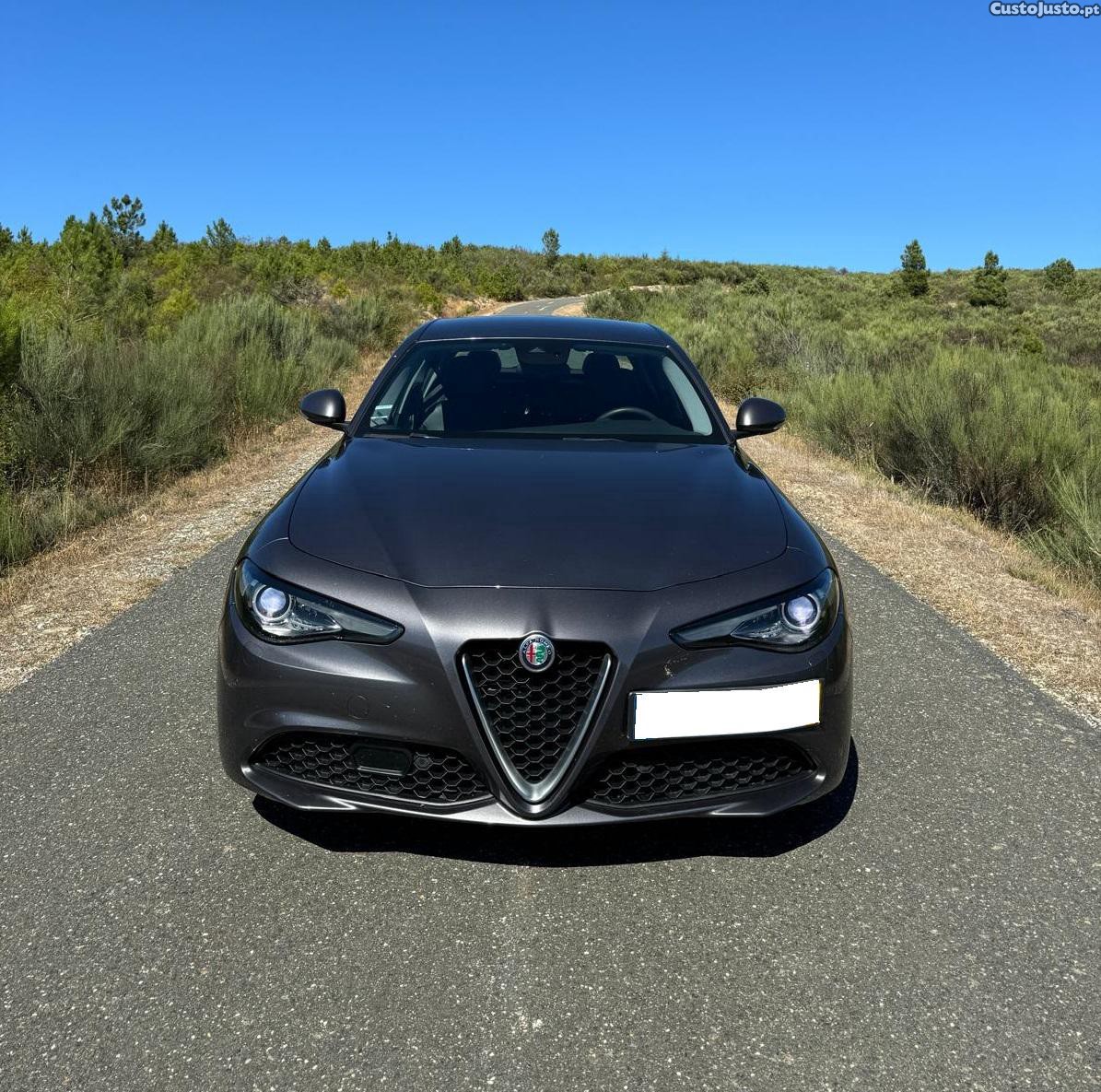Alfa Romeo Giulia 2.2D 180cv Caixa Automática ZF8 Nacional Bixénon Faróis Direcionais Bancos em Pele e Tecido Volante em Pele com multifunções e patilhas desportivas Sensor Deteção Colisão Sensores de Parqueamento Frente e Trás Bluetooh Inspeção e Selo pago