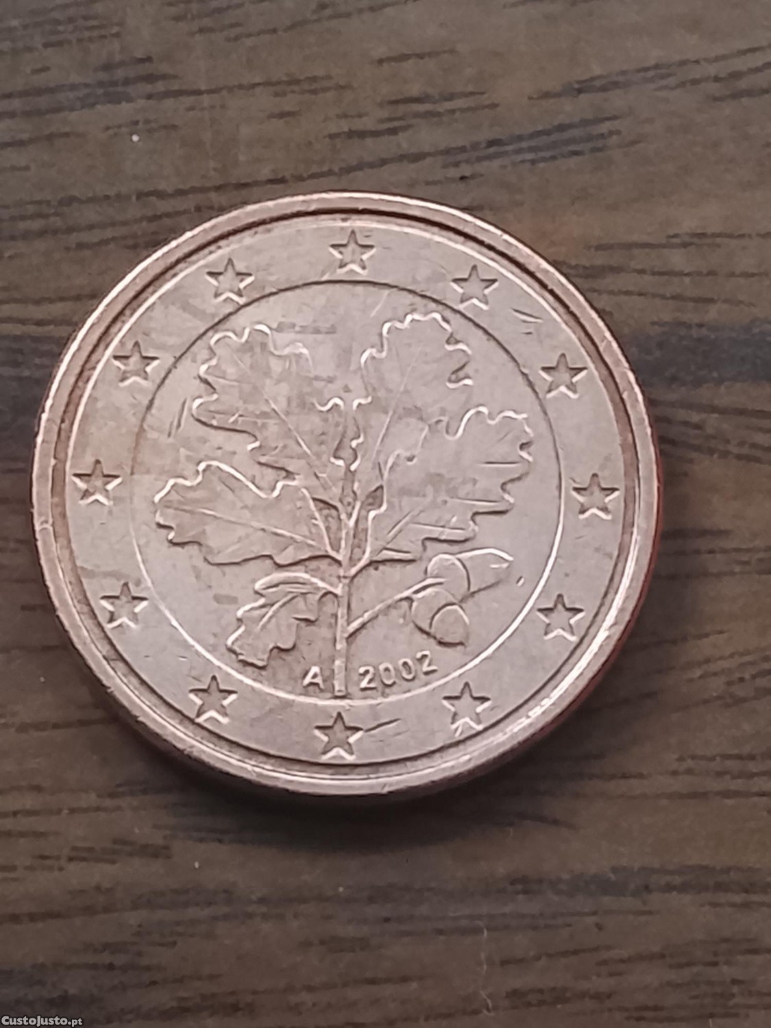 A moeda de 1 cêntimo que pode valer cerca de 50.000 EUR é uma emissão alemã de 2002, caracterizada por ter um carvalho no reverso, desenhado por Rolf Lederbogen. Estas moedas são valiosas devido a um erro de cunhagem na cor (utilizou-se um material diferente, mais escuro) ou por fazerem parte de uma série muito limitada.