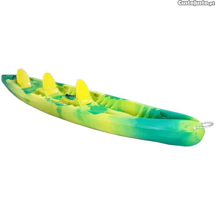 Verdadeiros kayaks de 3 lugares, com capacidade para até 3 adultos. Perfeitos para navegação em lago, rios calmos e no mar (até 300 m da costa).
