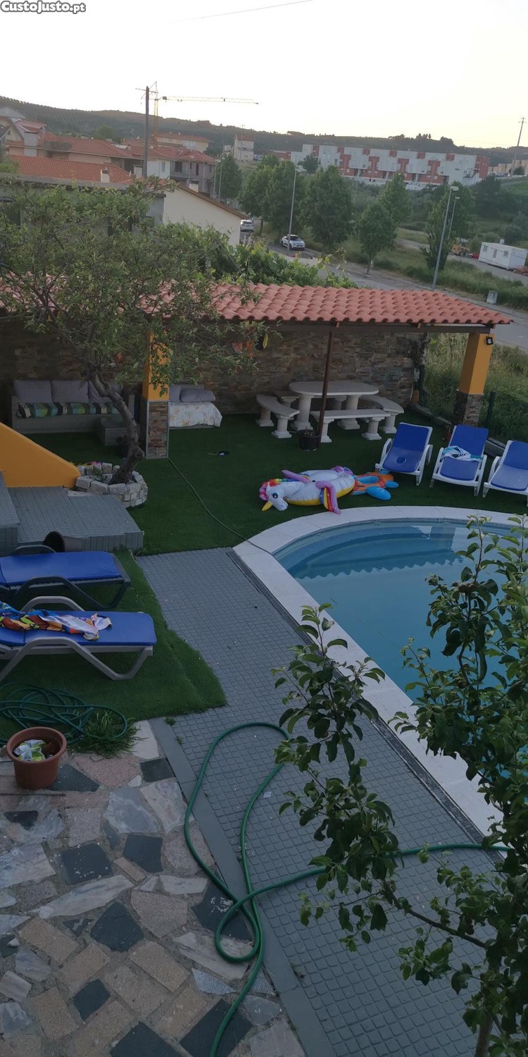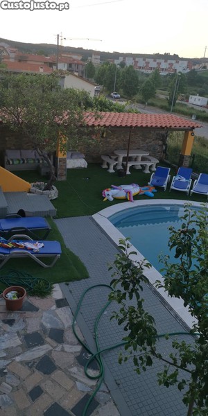 Moradia com grande piscina churrasqueira forno 3 quartos 2 cozinhas 3 casas de banho 2 grandes pátios 1 garagem. Toda equipada