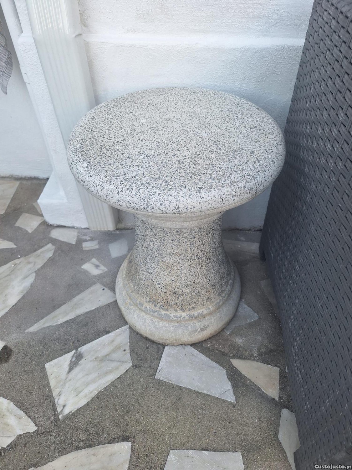Mesa e bancos de jardim em pedra
