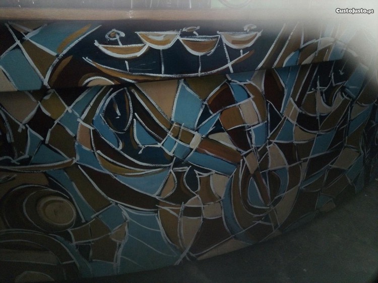 vendo balcão com 3 metros e trinta de comprimento com tampo em madeira em forma ondular e pintado á mão pela conceituada pintora de arte Senhora Dona Rosário Belo. Em bom estado.
