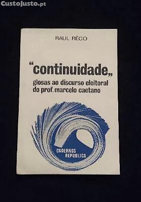 Preço: 9 €Raul Rêgo - Continuidade : Glosas ao discurso eleitoral do Prof. Marcelo Caetano