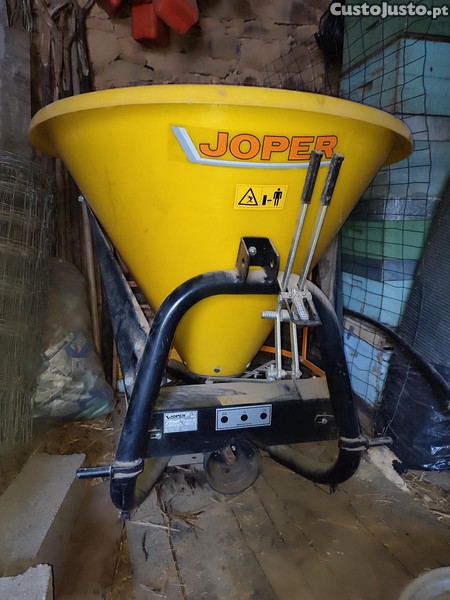Vende-se espalhador/distribuidor de adubo centrífugo Joper, modelo DC 250. A peça foi fabricada no ano 2000, mas permaneceu guardada em armazém e nunca viu terra, sol ou adubo.