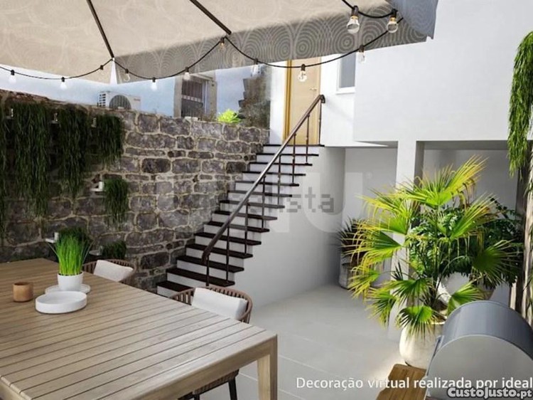 No exterior encontramos um agradável logradouro com cerca de 50m2 de área, com poço, anexo e árvores de fruto.