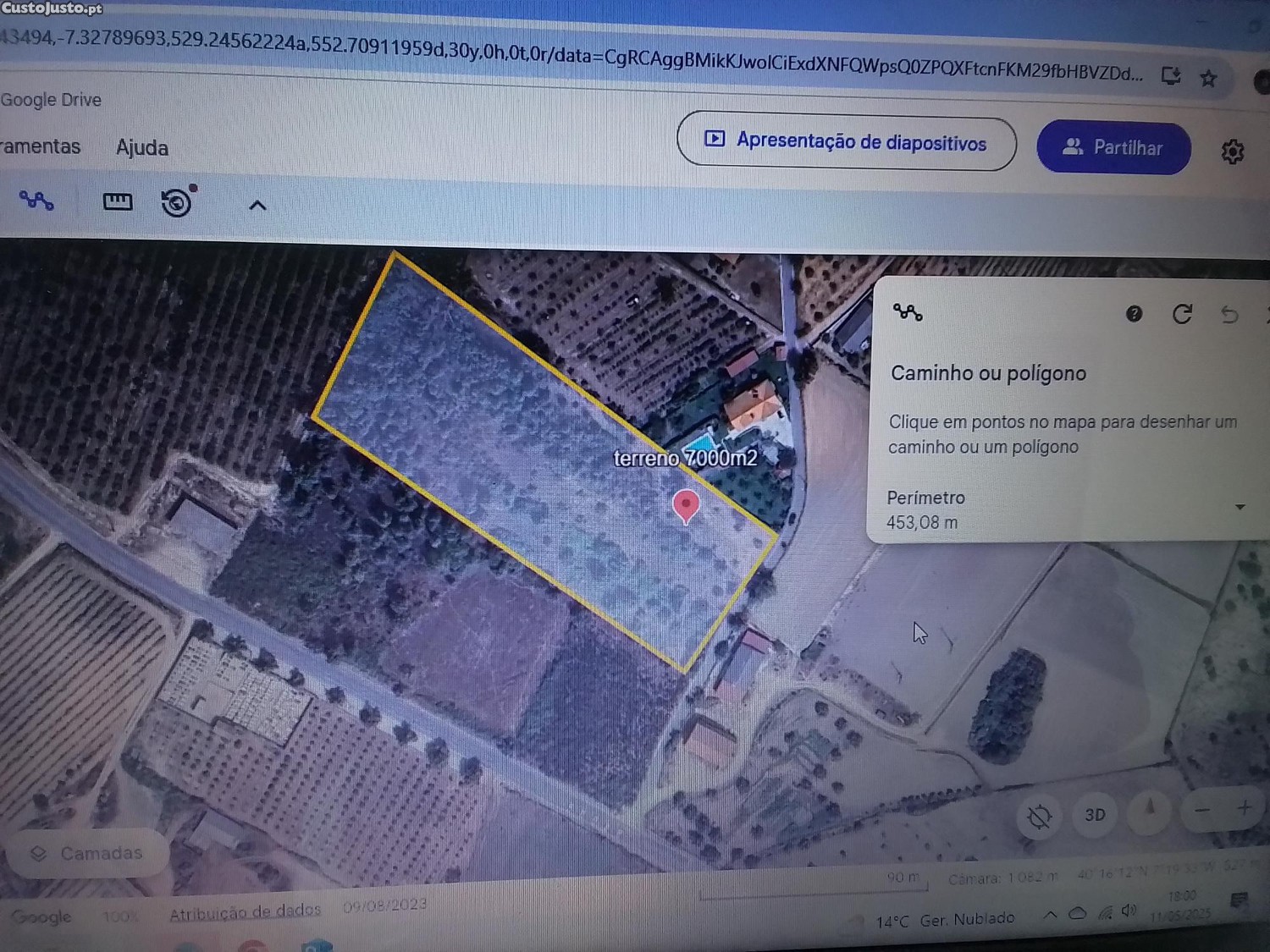 Com acessos em estrada alcatroada e com poste edp junto.