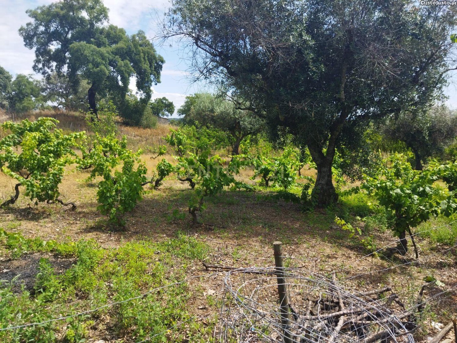 Terreno rústico com área total de 10.500m2, com duas Construções Rurais descritas em Caderneta Predial. Quatro poços em pedra, com diversas árvores de fruto, terreno propício para agricultura, com olival e vinha.