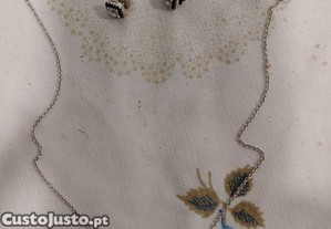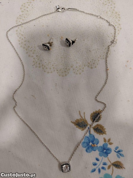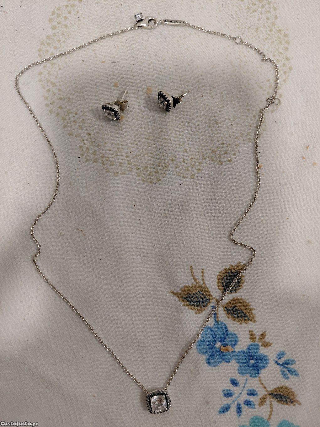 Cordão e Brinco Pandora Prata.