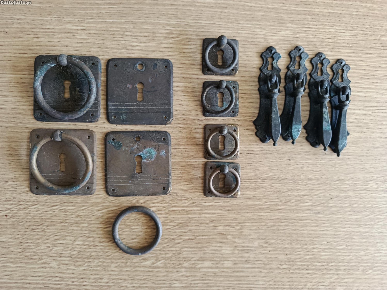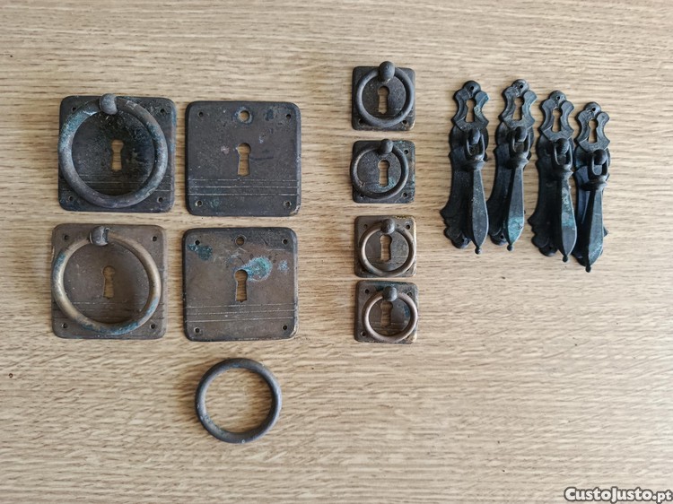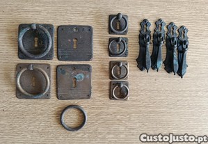 Conjunto de ferragens antigas para mobiliário.