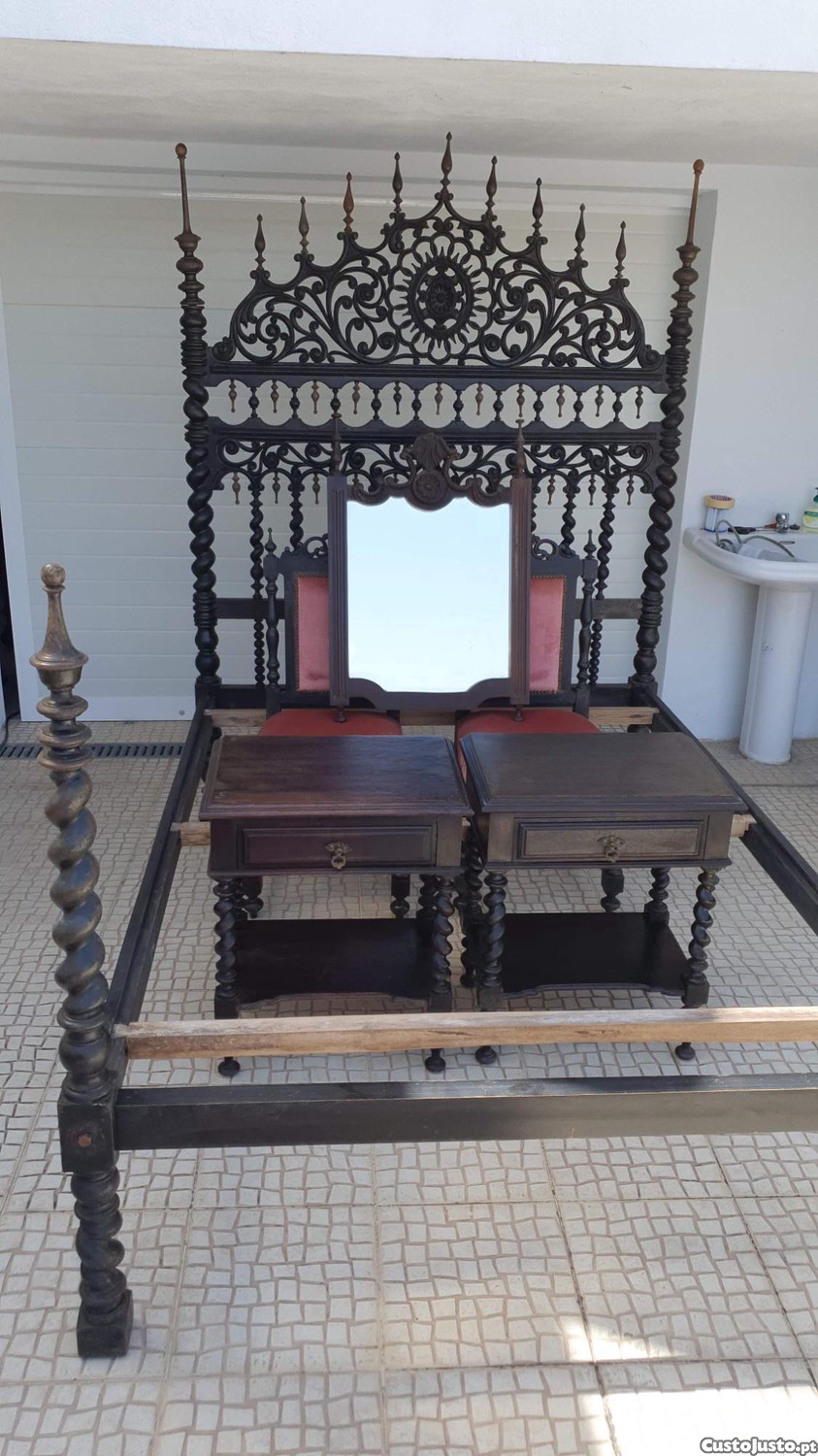 Mobilia antiga, cama ( sem estrado) 2 mesas cabeceira, 1 espelho e uma comoda
