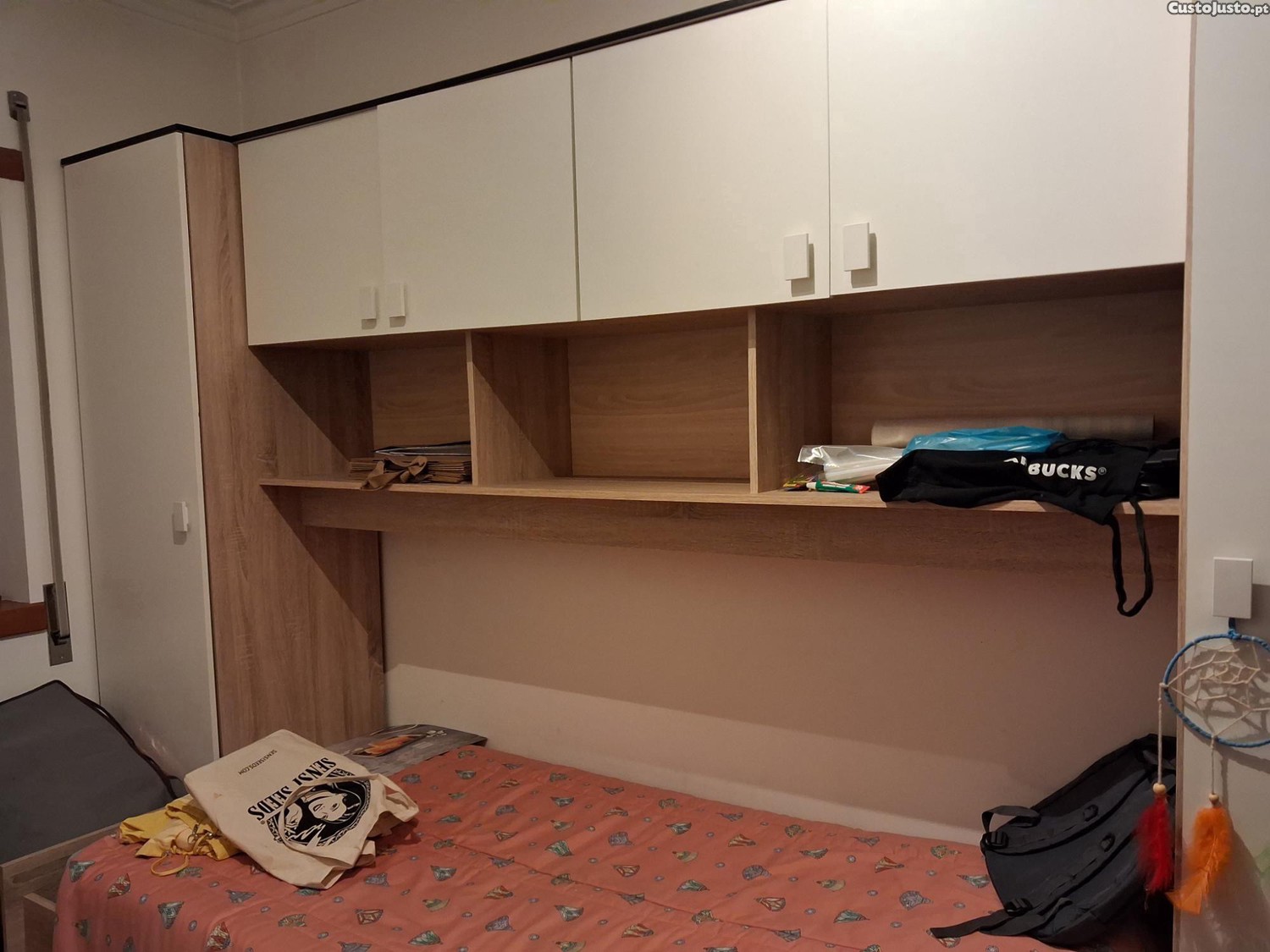 Mobília nova, com roupeiros laterais, duas camas. Ofereço um colchão e um roupeiro de 2 portas novo .