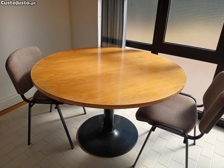 Preço: 150 €Mobiliário - Mesa redonda, em madeira, marca Levira, com 120 cm de diâmetro