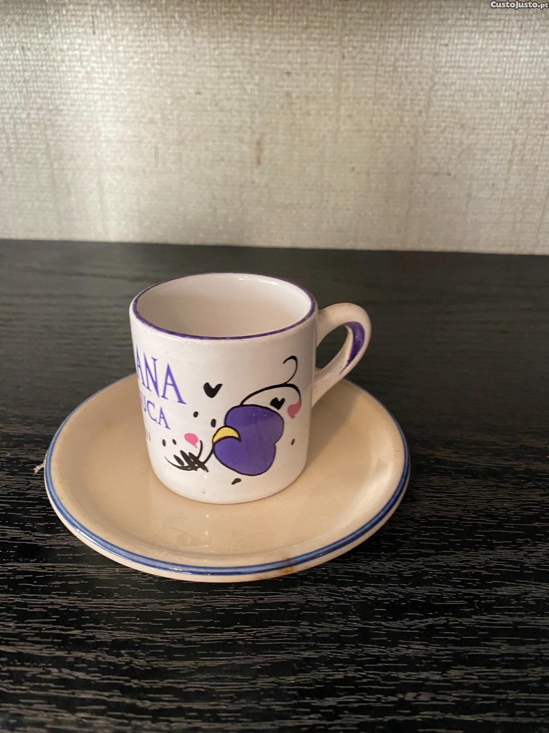 Preço: 2 €conjunto chavena e pires branca e roxa